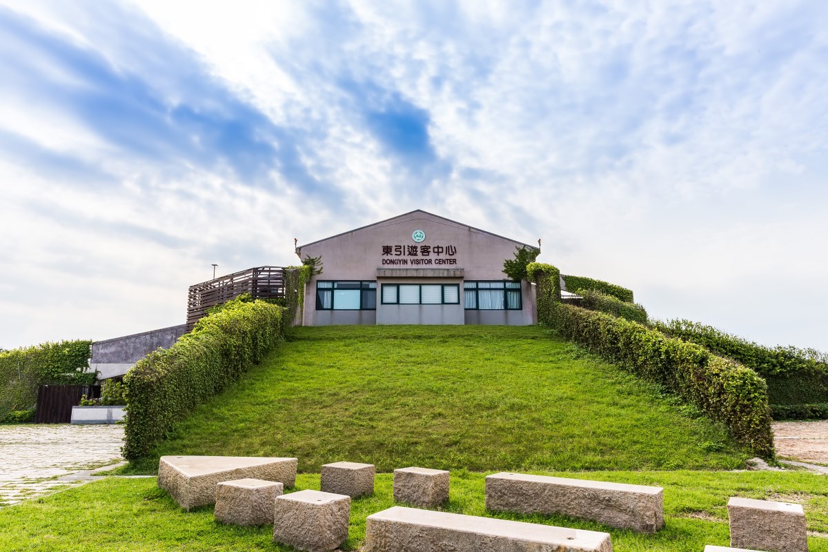 沿著中柱港邊的中正路行經白馬尊王廟,不久便來到東引遊客中心。2003年興建完成的東引遊客中心位在中柱港南側山頭、南橋直升機場下方,距離兩處都不遠;不同於其他遊客中心的閩東風格建築,東引遊客中心矗立在山頭,為了防止強風侵襲而做伏低設計,從中柱港抬頭便可望見,做為導覽遊客的目標物十分稱職。遊客中心一樓設有旅遊服務中心及販賣區,以燈塔、燕鷗為意向塑造的休息區,讓遊客可以在第一時間了解東引豐富的生態景觀,初來乍到,逛一趟絕對大有收穫。由於東引的觀光資源豐富,舉凡名勝古蹟、海蝕地景、戰地風貌、原生種植物等,均值得一探究竟,遊客不妨將遊客中心作為到訪東引的第一站,觀賞簡介影片、索取摺頁、或是諮詢旅遊資訊,為接下來的旅程動線作準備。
