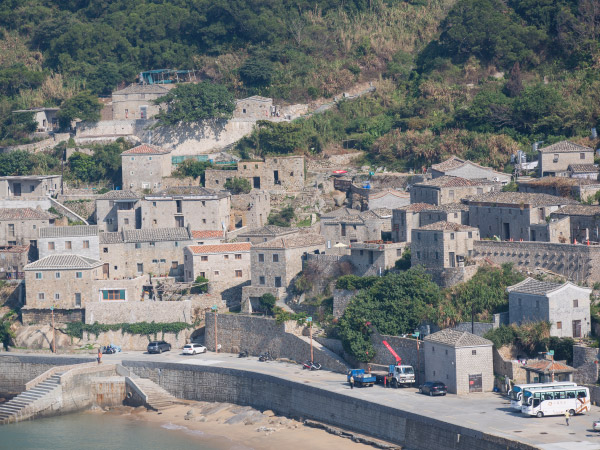 A view of the Qinbi Village, a coastal village built against the hillside.