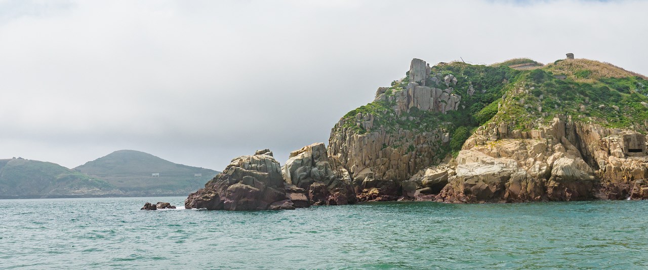 海上看東引的行程從中柱港出發,海崖上可看到許多戰地政務時期的軍事遺跡,如砲口或軍哨。途經雙子礁燕鷗保護區,可觀賞黑尾鷗的生態;另外東引的烈女義坑、一線天及燕秀潮音等,都是非常典型的海蝕溝。高聳的海崖,崖深一百多公尺,從海上觀看,更容易感受其壯觀與震撼的氣勢,岩石因海岸侵蝕作用形塑成松鼠及變色龍的造型,也只有從海上才能觀賞得到。