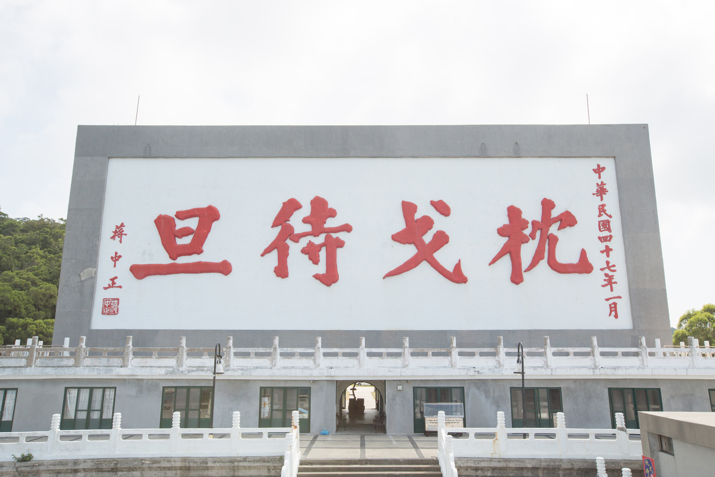 馬祖「枕戈待旦紀念公園」,有一面大大的枕戈待旦紀念碑,是先總統蔣公於1958年蒞臨馬祖巡防時親筆所題的放大版,只要搭乘船隻駛進馬祖福澳港,都可以親眼看到「枕戈待旦」這震撼的四個大字,枕戈待旦的釋義為:「枕著武器等待天明」形容不敢安睡,時時警惕隨時準備作戰,可見過往曾走過的戰地歲月,來到馬祖一定要站在這大紅色的字體下感受它的魄力。