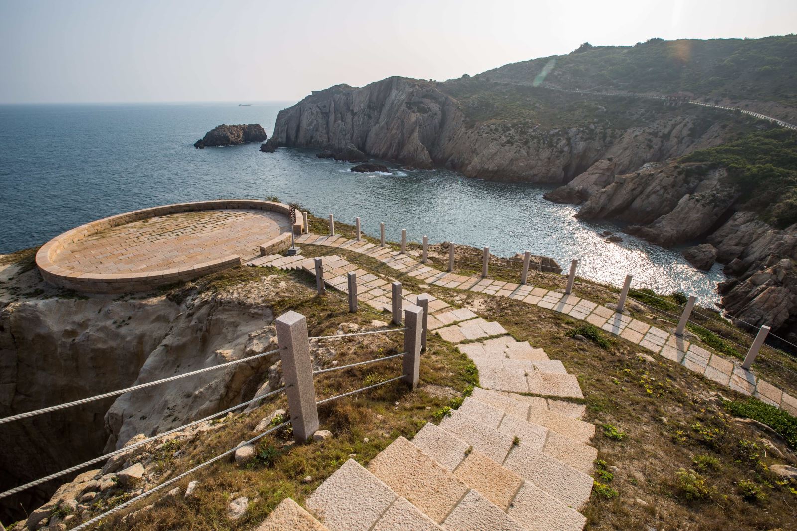 想要清楚得看見神秘小海灣的美景,可以選擇步行至環山靠海的「東洋山景觀步道」,步道平緩好走,沿途還能欣賞多種奇岩怪石,而在步道的入口有兩條路線可以選擇,往右走可至360度觀景大平臺,能從居高臨下的角度,眺望整片海灣,讓人有無限的想像與讚歎!